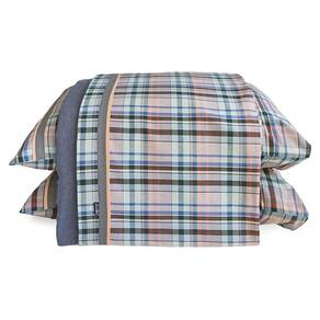 Jogo de lençol CASAL com 4 peças: 02 fronhas, 01 lençol com elástico, 01 lençol de cima - Medidas do lençol de elástico: 1,40 x 1,90 x 0,30 m - Medidas do lençol de cima: 2,20 x 2,40 m - Medidas da fronha: 50 x 70 cm - Cor do lençol de cima: xadrez salmão/verde/azul/preto - Cor do lençol de elástico: cinza mescla - Tecido: Flanela Cataguase 100% algodão - Enchimento para os travesseiros não incluso - As cores podem sofrer alterações conforme a configuração de sua tela