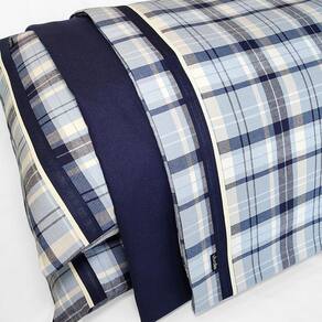 Jogo de lençol CASAL com 4 peças: 02 fronhas, 01 lençol com elástico, 01 lençol de cima - Medidas do lençol de elástico: 1,40 x 1,90 x 0,30 m - Medidas do lençol de cima: 2,20 x 2,40 m - Medidas da fronha: 50 x 70 cm - Cor do lençol de cima: xadrez azul com branco - Cor do lençol de elástico: azul marinho - Tecido: Flanela Cataguase 100% algodão - Enchimento para os travesseiros não incluso - As cores podem sofrer alterações conforme a configuração de sua tela