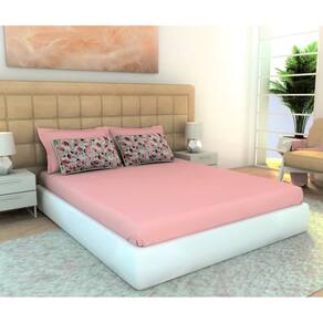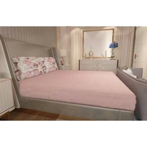 Jogo de Lençol Zono Enxovais Cama Casal Full 3 Peças Malha 100% Algodão Folhas Rosado