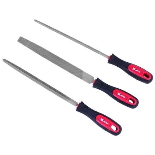 Descrição do Produto: Jogo de lima bastarda 8 com cabo 3 peças MTX O Jogo de lima bastarda 8 com 3 peças da MTX é composto por limas no formato triangular, chata e redonda. As limas são indicadas para o trabalho de desbaste de peças com rebarbas. A aderência da ferramenta é confortável e garante um excelente resultado o produto desbastado. Limas produzidas em ferro fundido e cabo com dupla injeção. Compõe o jogo: - 1 Lima triangualar - 1 Lima chata - 1 Lima Redonda. Ean: 3000000005521