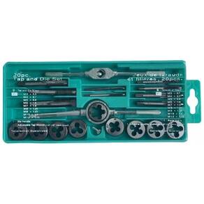 Jogo De Macho E Tarracha Com 20 Peças Estojo Características: -produzido em aço Carbono. -resistente a ferrugem. -tratamento industrial. -acompanhado com uma maleta verde. -mecanismos de precisão para padrões exatos. -com superfície polidas que facilita remoção de lascas. -contém 20 peças. Materiais Indicados: -alumínio, Madeira, PVC, Plástico, Latão, Metais Moles, Bronze, Entre Outros. Conteúdo: Contém 20 peças, sendo: -1 Chave manual ajustável. -1 Chave manual para tarracha. -9 Machos: M3x0,5, M4x0.7, M5x0.8, M6x1.0, M7x1.0, M8x1.25, M9x1,25, M10x1.5, M12x1.75mm. -9 Tarrachas: M3x0.5, M4x0.7, M5x0.8, M6x1.0, M7x1.0, M8x1.25, M9x1,25, M10x1.5, M12x1.75mm. Aplicação: O Jogo De Macho E Tarracha é indicado para confeccionar roscas internas macho e roscas externas tarracha , recomendado para uso hobby. Machos são ferramentas que tem a função de gerar roscas internas em furos para o rosqueamento de parafusos. Essas ferramentas são fabricadas em aço carbono. O macho pode ser aplicado de forma manual ou em máquina. Os machos manuais são mais curtos que os machos para máquina e compostos por jogos de duas peças para rosca fina e três para roscas normais. No rosqueamento com macho manual, o movimento de corte giratório é feito com o auxilio de uma chave a fim de abrir ou alargar furos. O macho para aplicação em máquina é geralmente de uma única peça e o movimento de corte giratório é feito por meio de cabeçotes rosqueadores. As Tarrachas são ferramentas que tem a função de gerar roscas externas em eixos, parafusos e tubos para união com porcas. Essas ferramentas são fabricadas em aço carbono. O Jogo Macho E Tarracha pode ser em metal mole, alumínio, PVC, madeira, plástico, latão, bronze e entre outros. Marca: DM Ferramentas e equipamentos automotivos