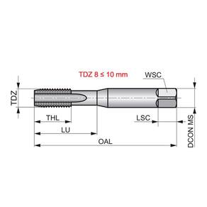 - Especificações Técnicas: Métrico Material ID: 8522429 Tamanho do diâmetro da rosca (TDZ): 10 Passo da rosca (TP): 1.5 mm Comprimento total (OAL): 80 mm Diâmetro da rosca (TD): 10 mm Comprimento da rosca (THL): 24 mm Diâmetro de conexão (DCON MS): 10 mm Largura de fixação (WSC): 8 mm Comprimento de fixação (LSC): 11 mm Número de Canais (NOF): 4 Diâmetro pré-usinado do furo (PHD): 8.5 mm Comprimento útil (LU): 39 mm