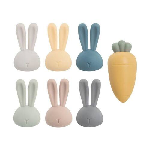 O Jogo de Marcador de Taças Coelhinhos tem 6 peças no formato de coelhinhos, produzidas em silicone, que podem ser encaixadas no bojo de taças, ideal para diferenciar e evitar trocas de bebidas ao receber os amigos em casa para alguma festinha ou jantar. A rolha em silicone no formato de cenoura veda e protege o vinho após aberto.