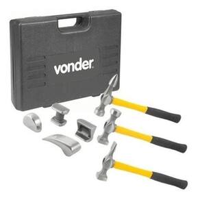 Jogo de Martelo e Tasso 7 Peças Vonder Conteúdo da Embalagem: 1 Jogo composto por maleta plástica com 7 peças, sendo: 1 martelo chapeador pena reta, 1 martelo chapeador ponta curta, 1 martelo chapeador faces planas, 1 tasso curvado, 1 tasso trilho, 1 tasso maçaneta e 1 tasso salto Aplicações e dicas de uso: Indicado para funilaria em geral Destaques e diferenciais: Martelos com empunhadura em borracha, que oferece melhor pega e maior conforto ao operador. Acompanha maleta plástica para armazenamento e transporte das peças. Detalhes Técnicos: Quantidade de peças: 7 peças : legal: 90 dias Produto: Jogo Marca: Não Informado Ean: 7893946583316