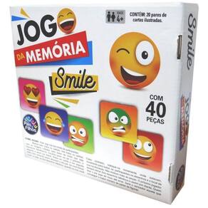 Jogo de Memória Smile 40 peçasAs peças devem ser misturadas com as faces voltadas para baixo.Escolha quem dará início ao jogo. Tente encontrar as 2 peças iguais.O vencedor será aquele que conseguir formar o maior número de pares. Divertido e educativo, a criança aprende brincando Conteúdo 40 peças Material: Papel cartonadoFaixa etária: a partir de 4 anosNão recomendável para menores de 3 anos por conter partes pequenas que podem ser engolidas.