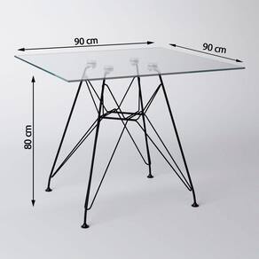 JOGO DE MESA EAMES DE FERRO PRETO E TAMPO QUADRADO VIDRO 90CM 4 CADEIRAS PRETASO Jogo de Mesa 4 Cadeiras Eames se destaca pelo design moderno e sofisticado. A Cadeira Eames é confeccionada em policarbonato, sua base é em ferro, o que confere total resistência e conforto, o tampo é confeccionado em vidro, possuindo base em ferro. O Jogo de Mesa 4 Cadeiras Eames da vida ao ambiente além de combinar com todos os tipos e cores de móveis.Dimensões:Cadeira:Cor: PretoAltura: 85cmLargura: 47cmProfundidade: 50cmAssento x Chão: 45cmContém: 04 cadeirasPeso máximo suportado: 120 KgMesa:Cor: VidroAltura: 76cmLargura: 90cmProfundidade: 90cmObs: Imagens Meramente IlustrativaJogo de Mesa Eames de Ferro Preto e Tampo Quadrado Vidro 90cm 4 Cadeiras Pretas