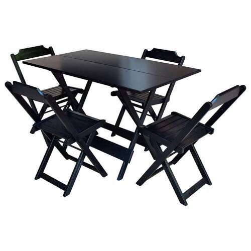 Jogo De Mesa Dobrável 120x70 Em Madeira Maciça Com 4 Cadeiras - Preto - Cor: Preto