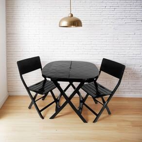 Composição do conjunto: 1 mesa dobrável e 2 cadeiras dobráveis