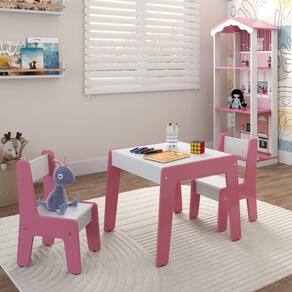 Este conjunto encantador de 2 Cadeiras e Mesa é perfeito para proporcionar um espaço confortável e divertido para as crianças brincarem, estudarem ou desfrutarem de suas refeições.