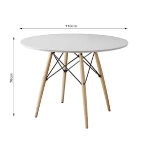 Jogo De Mesa Eiffel Redondo Tampo De Madeira 110cm Branco Com 4 Cadeiras Katrina em Aço Azul Turquesa Assento BegeA sua cozinha ou sala de jantar ficará completa com esse lindo Conjunto de Mesa e Cadeiras! Contendo um design de móveis moderno, elegante e com uma ousada combinação de cores, esse é um kit que certamente é uma solução que esbanja estilo, elegância e muito requinte.O conjunto tem em sua diversificada estrutura de materiais com altíssima qualidade, que proporciona muito mais resistência, mesmo com o passar dos anos, e com seus 4 assentos Katrina Aço é ideal para um jantar em família sem abrir mão do conforto. O Kit acompanha versatilidade e combina com vários tipos de decoração, o que dá mais praticidade em sua casa.Informações técnicas Conjunto:Conteúdo da Embalagem: 01 Mesa e 04 Cadeiras (Embalados Separadamente).Instruções/Cuidados: Limpar com pano seco ou levemente umedecido com água.Necessita de Montagem? Sim.Mesa:Modelo: Eiffel WoodTipo: RedondaCor do tampo: BrancoCor da base dos pés: Wood (Madeira)Material do tampo: MadeiraMaterial dos pés: MadeiraDimensões: Altura: 76 cm // Largura: 110 cm // Profundidade: 110 cmCadeiras:Modelo: KatrinaCor: Azul Turquesa e BegeMaterial da estrutura: Aço com Pintura E-PoxMaterial do assento: Espuma D14 com Revestimento em Corano.Dimensões: Altura: 90 cm // Largura: 50 cm // Profundidade: 55 cmJogo de Mesa Eiffel Redondo Tampo de Madeira 110cm Branco com 4 Cadeiras Katrina Azul Turquesa Assen
