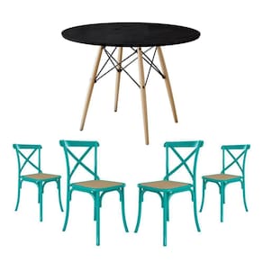 Jogo De Mesa Eiffel Redondo Tampo De Madeira 110Cm Preto Com 4 Cadeiras Katrina Azul Turquesa