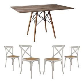Jogo De Mesa Eiffel Retangular Tampo De Madeira 120x75cm Amêndoa Com 4 Cadeiras Katrina Branca Assen