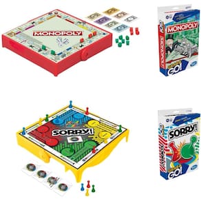 Conjunto de 5 jogos de viagem Grab and Go da Hasbro Gaming - Desculpe! , Hungry Hippos, Monopoly, Adivinha quem? e Candy Land