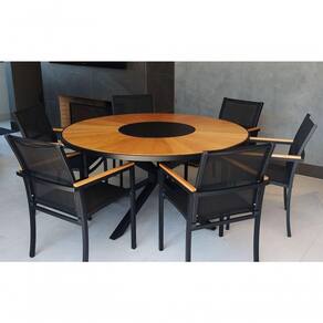 Mesa Zurick 1,50m: Design inovador em pétalas: um toque de sofisticação que valoriza a decoração da sua sala de jantar ou área gourmet. Amplo espaço para 6 pessoas: ideal para acomodar toda a família e amigos com conforto. Tampo de madeira maciça: a beleza natural da madeira, com resistência e durabilidade incomparáveis. Base em alumínio: leveza e robustez para garantir a estabilidade da mesa.
