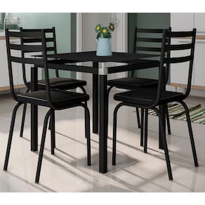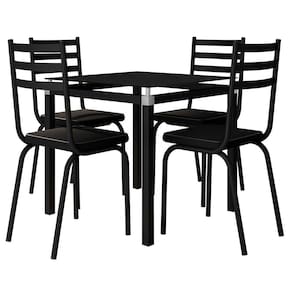 O Jogo de Mesa Malva 75cm e 4 Cadeiras 118 Preto - Artefamol, tem design arrojado, composto por uma mesa quadrada com tampo de vidro temperado e acompanha 4 cadeiras com assentos revestidos em courvin sendo fácil de limpar. Estrutura em aço carbono e acabamento em pintura epóxi, com tratamento de fosfatização, garantindo maior resistência a oxidação e fixação da pintura. Aproveite e compre já!