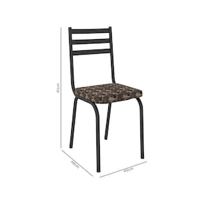 Estrutura de Aço Carbono, com tampo BP Nature, cadeiras com estrututa de Aço Carbono com assento de MDP revestido de Courvin e espuma 30mm.