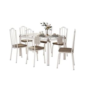 Jogo de Mesa Malva Vidro Branco De 140cm e 6 Cadeiras 121 Branco Ratan Artefamol