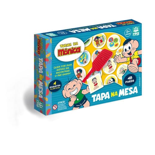 s crianças vão curtir muito depois de brincar de montão com o tapa na mesa da Turma da Mônica Indicado para crianças acima de 5 Anos, o jogo vem com 4 raquetes para brincar. Quem for o mais rápido a encontrar o par, ganha. Divirta-se com sua família com os personagens mais carismáticos do Maurício de Souza. Imagens meramente ilustrativas.