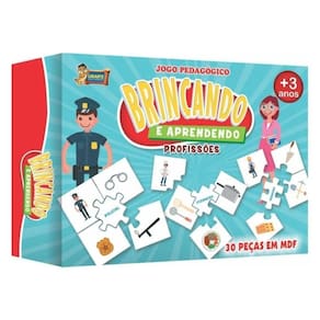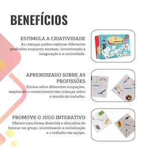 Contém peças coloridas e ilustrativas que representam diversas profissões