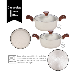 - PRÁTICO: As panelas do conjunto funcionam em fogões a gás (em fogo baixo), elétrico, vitrocerâmico e de indução. Seu material permite a condução rápida e eficiente do calor, sendo a temperatura baixa ou média suficiente para cozinhar os alimentos, reduzindo o consumo de gás e energia.
