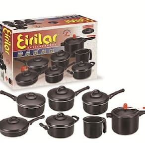 Conjunto de panelas de alumínio fabricadas pela Indústria de Alumínios Eirilar, tradicional Empresa do setor.