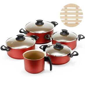Jogo De Panelas 05 Pçs Antiaderentes + 05 Descansos Panela