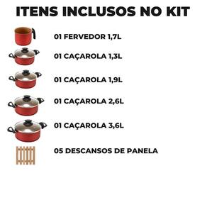 Jogo de Panelas 05 Peças Caçarolas e Fervedor Antiaderente Com Tampa de Vidro Marcolar