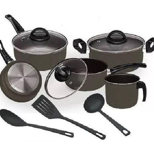 Marca: marpal Material: alumínio teflon antiaderente Material das tampas: alumínio Material dos utensílios: nylon Material alças e poméis: baquelite Espessura: 1,0 mm Cor: preto