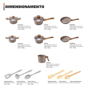 Distribuído por feheros shop Jogo de panelas 10 peças 4mm revestimento cerâmico premium indução Atenção As panelas com revestimento cerâmico possuem propriedades antiaderentes, mas não são 100% antiaderentes. Para melhores resultados, recomenda-se o uso de pequenas quantidades de óleo. O revestimento cerâmico é uma alternativa saudável e ecológica, pois não libera substâncias tóxicas quando aquecido. - panelas premium com certificação inmetro nível a - não deixe a chama do fogão pegar nas laterais das panelas - leia atentamente a descrição e siga as recomendações do fabricante Informações do produto Este conjunto oferece uma versatilidade incrível, compatível com fogões a gás, elétricos, vitrocerâmicos e de indução. Seu revestimento cerâmico proporciona durabilidade excepcional, resistente a arranhões e abrasões, garantindo maior vida útil ao produto. Livre de pfoa e ptfe, para quem busca uma cozinha mais saudável. Com design premium, apresenta acabamento moderno e elegante. Além disso, aquece rapidamente e distribui o calor de forma uniforme, promovendo economia de tempo e energia. O conjunto completo com 10 peças permite preparar diversas receitas com praticidade e eficiência. Especificações técnicas - compatível com fogões a gás, elétricos, vitrocerâmicos e de indução - revestimento cerâmico em 3 camadas com espessura de 4 mm - cabo de baquelite com revestimento soft touch, confortável e seguro - livre de pfoa e classificado como nível a no inmetro - fundo triplo com base de indução: estrutura que combina alumínio e revestimento cerâmico. - revestimento: 2 camadas cerâmicas + 1 camada resistente a alta temperatura Ficha técnica do produto - panela 16 cm: d 16 cm x a 8,5 cm c 1300 ml p 730 g - panela 20 cm: d 20 cm x a 9 cm c 2250 ml p 1050 g - caçarola 20 cm: d 20 cm x a 9 cm c 2250 ml p 1080 g - caçarola 22 cm: d 22 cm x a 10 cm c 3250 ml p 1350 g - leiteira 14 cm: d 14 cm x a 10,5 cm c 2000 ml p 350 g - frigideira 18 cm: d 18 cm x a 4 cm c 750 ml p 300 g - frigideira 22 cm: d 22 cm x a 4,7 cm c 1450 ml p 500 g - colher silicone 29cm: 29 cm x l 6,5 cm p 120 g - concha silicone 29cm: 29 cm x l 9 cm p 110 g - espátula vazada silicone 29,5cm: 29,5 cm x l 7 cm p 110 g Importante: d = diâmetro, a = altura, c = capacidade, p = peso Antes do primeiro uso - lave com esponja macia e detergente - seque com pano macio - aplique um pouco de óleo na parte interna - leve ao fogo baixo por 2 minutos - desligue o fogo e espere esfriar - lave novamente e seque Após o uso - evite choques térmicos. Deixe esfriar antes de lavar - lave à mão com água morna, esponja macia e detergente - enxágue e seque com pano macio - para alimentos queimados, deixe de molho e lave - não utilize utensílios metálicos, objetos afiados ou produtos abrasivos Itens inclusos no pacote - 01 panela 16 cm com tampa de vidro - 01 panela 20 cm com tampa de vidro - 01 caçarola 20 cm com tampa de vidro - 01 caçarola 22 cm com tampa de vidro - 01 leiteira 14 cm - 01 frigideira 18 cm - 01 frigideira 22 cm - 01 colher silicone 29cm premium - 01 concha silicone 29cm premium - 01 espátula vazada silicone 29,5cm premium acompanha - 01 espátula vazada de bambu - 01 colher vazada de bambu - 01 colher para arroz de bambu Todas as fotos são reais dos produtos. Qualquer dúvida, estamos à disposição Dúvidas frequentes 01 - o produto pode ir ao forno R: não, este conjunto não é adequado para uso no forno devido ao cabo em baquelite. 02 - o produto é novo Possui R: sim, o produto é novo e possui de 3 meses conforme as normas do fabricante. 03 - é compatível com fogão de indução R: sim, o conjunto possui fundo especial que permite o uso em fogões de indução, além de fogões a gás, elétricos e vitrocerâmicos.