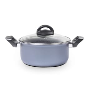 Descrição do Produto Design moderno e sofisticado na elegante cor jeans, que dá charme à decoração da cozinha; Revestimento antiaderente de alta performance: fácil de limpar, alimentos não grudam; Estrutura em alumínio que distribui o calor de forma uniforme, reduzindo o tempo de cozimento; Cabos e alças em Baquelite resistente ao calor, com toque confortável e seguro; Tampas de vidro temperado com saída de vapor — acompanhe o preparo sem precisar abrir; Pode ser utilizada nos seguintes tipos de fogões: Gás, Elétrico e Vitrocerâmico, Não vai na Indução Composição (10 peças) 01 Caçarola com Tampa: 24cm x 11,5 cm - 4,9 L 01 Caçarola com Tampa: 20cm x 10 cm - 3 L 01 Panela com Tampa: 18cm x 9 cm - 2,2 L 01 Panela com Tampa: 16cm x 8 cm - 1,5 L 01 Frigideira: 20cm x 4 cm - 950 mL 01 Fervedor: 14 cm x 12,5 cm - 1,85 L 01 Wok: 24 - 2,65 L 01 Concha Wavy: 29,8 cm 01 Concha Wavy: 29,5 cm 01 Espátula Wavy: 30 cm