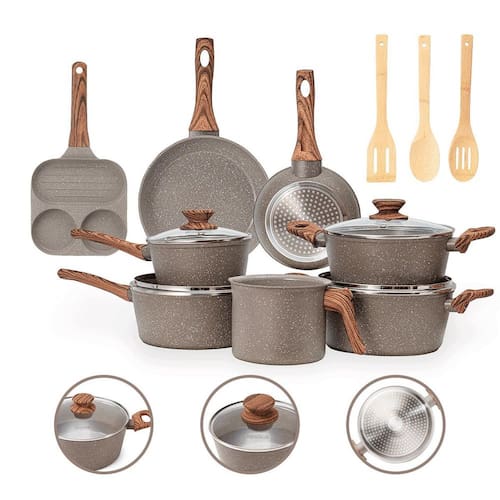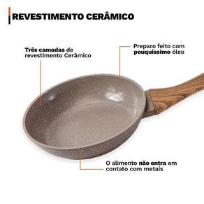 Distribuído por feheros shop Jogo de panelas 11 peças premium indução revestimento cerâmico Atenção As panelas com revestimento cerâmico oferecem propriedades antiaderentes, mas não são 100% antiaderentes. Para melhores resultados, recomenda-se o uso de pequenas quantidades de óleo ou . O revestimento cerâmico é uma alternativa saudável e ecológica, pois não libera substâncias tóxicas quando aquecido. - panelas premium com certificação inmetro nível a - não deixe a chama do fogão pegar nas laterais das panelas - leia atentamente a descrição e siga as recomendações do fabricante Informações do produto - versatilidade incrível: compatível com fogões a gás, elétrico, vitrocerâmico e de indução - durabilidade excepcional: revestimento cerâmico resistente a arranhões e abrasões - cozinha saudável: livre de pfoa e ptfe, ideal para quem busca mais saúde - design premium: acabamento moderno e elegante que facilita a limpeza - economia de tempo e energia: aquece rápido e distribui o calor de forma uniforme - conjunto completo: 11 peças para preparar diversas receitas com praticidade Especificações técnicas - compatível com fogões a gás, elétricos, vitrocerâmicos e de indução - revestimento cerâmico em 3 camadas com espessura de 4 mm - cabo de baquelite com revestimento soft touch, confortável e seguro - permite cozinhar com menos óleo graças ao revestimento antiaderente cerâmico - livre de pfoa e classificado como nível a no inmetro - fundo triplo com indução: estrutura em alumínio com cerâmica, economia de energia - composição de revestimento: 2 camadas cerâmicas + 1 camada resistente a alta temperatura Ficha técnica do produto - panela 16 cm: d 16 cm x a 8,5 cm c 1300 ml p 730 g - panela 20 cm: d 20 cm x a 9 cm c 2250 ml p 1050 g - caçarola 20 cm: d 20 cm x a 9 cm c 2250 ml p 1080 g - caçarola 22 cm: d 22 cm x a 10 cm c 3250 ml p 1350 g - leiteira 14 cm: d 14 cm x a 10,5 cm c 2000 ml p 350 g - frigideira 18 cm: d 18 cm x a 4 cm c 750 ml p 300 g - frigideira 22 cm: d 22 cm x a 4,7 cm c 1450 ml p 500 g - frigideira grill 3 em 1: 18 x 18 cm x a 2 cm p 600 g - espátula vazada de bambu: 30 x 6 x 1 cm - colher vazada de bambu: 30 x 6 x 1 cm - colher para arroz de bambu: 30 x 6 x 1 cm Importante: d= diâmetro, a= altura, c= capacidade, p= peso Antes do primeiro uso - lave com esponja macia e detergente - seque com pano de prato - aplique um pouco de óleo na parte interna - leve ao fogo baixo por 2 minutos - desligue o fogo e espere esfriar - lave novamente e seque Após o uso - evite choques térmicos. Deixe esfriar antes de lavar - lave à mão com água morna, esponja macia e detergente - enxágue e seque com pano macio - para alimentos queimados, deixe de molho e use materiais não abrasivos - não utilize utensílios metálicos, objetos afiados ou produtos abrasivos Itens inclusos no pacote - 01 panela 16 cm 1,3 l com tampa de vidro - 01 panela 20 cm 2,25 l com tampa de vidro - 01 caçarola 20 cm 2,25 l com tampa de vidro - 01 caçarola 22 cm 3,25 l com tampa de vidro - 01 leiteira 14 cm 2 l - 01 frigideira 18 cm 0,75 l - 01 frigideira 22 cm 1,45 l - 01 frigideira grill 3 em 1 - 01 espátula vazada de bambu - 01 colher vazada de bambu - 01 colher para arroz de bambu Todas as fotos são reais dos produtos. Qualquer dúvida, estamos à disposição 01- o produto pode ir ao forno R: não, estes modelos não são adequados para uso no forno devido ao cabo em baquelite. 02- o produto é novo Possui R: sim, o produto é novo e possui de 3 meses conforme as normas do fabricante. 03- é compatível com fogão de indução R: sim, possuem fundo especial que permite o uso em fogões de indução, além de fogões a gás, elétricos e vitrocerâmicos.