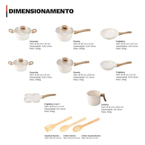 Distribuído por feheros shop Jogo de panelas 11 peças premium indução revestimento cerâmico Atenção As panelas com revestimento cerâmico oferecem propriedades antiaderentes, mas não são 100% antiaderentes. Para melhores resultados, recomenda-se o uso de pequenas quantidades de óleo ou . O revestimento cerâmico é uma alternativa saudável e ecológica, pois não libera substâncias tóxicas quando aquecido. - panelas premium com certificação inmetro nível a - não deixe a chama do fogão pegar nas laterais das panelas - leia atentamente a descrição e siga as recomendações do fabricante Informações do produto - versatilidade incrível: compatível com fogões a gás, elétrico, vitrocerâmico e de indução - durabilidade excepcional: revestimento cerâmico resistente a arranhões e abrasões - cozinha saudável: livre de pfoa e ptfe, ideal para quem busca mais saúde - design premium: acabamento moderno e elegante que facilita a limpeza - economia de tempo e energia: aquece rápido e distribui o calor de forma uniforme - conjunto completo: 11 peças para preparar diversas receitas com praticidade Especificações técnicas - compatível com fogões a gás, elétricos, vitrocerâmicos e de indução - revestimento cerâmico em 3 camadas com espessura de 4 mm - cabo de baquelite com revestimento soft touch, confortável e seguro - permite cozinhar com menos óleo graças ao revestimento antiaderente cerâmico - livre de pfoa e classificado como nível a no inmetro - fundo triplo com indução: estrutura em alumínio com cerâmica, economia de energia - composição de revestimento: 2 camadas cerâmicas + 1 camada resistente a alta temperatura Ficha técnica do produto - panela 16 cm: d 16 cm x a 8,5 cm c 1300 ml p 730 g - panela 20 cm: d 20 cm x a 9 cm c 2250 ml p 1050 g - caçarola 20 cm: d 20 cm x a 9 cm c 2250 ml p 1080 g - caçarola 22 cm: d 22 cm x a 10 cm c 3250 ml p 1350 g - leiteira 14 cm: d 14 cm x a 10,5 cm c 2000 ml p 350 g - frigideira 18 cm: d 18 cm x a 4 cm c 750 ml p 300 g - frigideira 22 cm: d 22 cm x a 4,7 cm c 1450 ml p 500 g - frigideira grill 3 em 1: 18 x 18 cm x a 2 cm p 600 g - espátula vazada de bambu: 30 x 6 x 1 cm - colher vazada de bambu: 30 x 6 x 1 cm - colher para arroz de bambu: 30 x 6 x 1 cm Importante: d= diâmetro, a= altura, c= capacidade, p= peso Antes do primeiro uso - lave com esponja macia e detergente - seque com pano de prato - aplique um pouco de óleo na parte interna - leve ao fogo baixo por 2 minutos - desligue o fogo e espere esfriar - lave novamente e seque Após o uso - evite choques térmicos. Deixe esfriar antes de lavar - lave à mão com água morna, esponja macia e detergente - enxágue e seque com pano macio - para alimentos queimados, deixe de molho e use materiais não abrasivos - não utilize utensílios metálicos, objetos afiados ou produtos abrasivos Itens inclusos no pacote - 01 panela 16 cm 1,3 l com tampa de vidro - 01 panela 20 cm 2,25 l com tampa de vidro - 01 caçarola 20 cm 2,25 l com tampa de vidro - 01 caçarola 22 cm 3,25 l com tampa de vidro - 01 leiteira 14 cm 2 l - 01 frigideira 18 cm 0,75 l - 01 frigideira 22 cm 1,45 l - 01 frigideira grill 3 em 1 - 01 espátula vazada de bambu - 01 colher vazada de bambu - 01 colher para arroz de bambu Todas as fotos são reais dos produtos. Qualquer dúvida, estamos à disposição 01- o produto pode ir ao forno R: não, estes modelos não são adequados para uso no forno devido ao cabo em baquelite. 02- o produto é novo Possui R: sim, o produto é novo e possui de 3 meses conforme as normas do fabricante. 03- é compatível com fogão de indução R: sim, possuem fundo especial que permite o uso em fogões de indução, além de fogões a gás, elétricos e vitrocerâmicos.