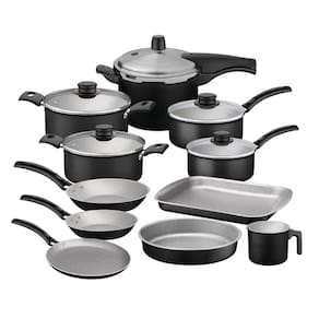 Seja qual for a receita que você vai preparar, é essencial contar com itens de qualidade, como o jogo de panelas Tramontina Turim e a Panela de Pressão Vancouver em alumínio com revestimento interno e externo em antiaderente Starflon Max. Aptas para uso no dia a dia, suas peças garantem maior segurança e facilidade na hora preparar suas refeições, pois contam com cabos, alças e pegadores em baquelite e nylon e vem com tampas de vidro temperado com borda de aço inox. Você ainda cozinha de maneira rápida e uniforme, sem que os alimentos grudem em sua superfície e tem facilidade na limpeza, pois o corpo das peças tem produção em alumínio com revestimento em antiaderente Starflon Max. Escolha Tramontina e deixe suas tarefas na cozinha, ainda melhores!