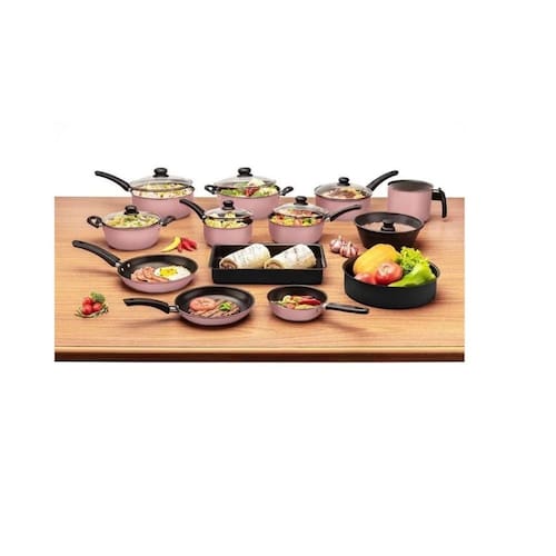 O conjunto de panelas mais completo com a qualidade que sua família merece e com o preço justo que seu bolso merece As panelas são em alumínio com revestimento antiaderente que além de facilitar a preparação de alimentos com maior rapidez e facilidade, torna a hora de lavar a louça uma tarefa mais simples. Os cabos, alças e pegadores da tampa são anatômicos em baquelite antitérmico, proporcionando maior segurança e durabilidade com elegância e modernidade para a sua cozinha Ideal para cozinhar no dia a dia, proporciona qualidade e conforto. Composição:- Panela 14'- Panela 16'- Panela 18'- Panela 20'- Caçarola 18'- Caçarola 20'- Canecão 14'- Frigideira 16' s/ tampa- Frigideira 18' s/ tampa- Frigideira 20' s/ tampa- Assadeira nº 01- Forma de Bolo 25'- Forma com Centro 25'Marca: Dona ChefaMaterial: Alumínio Teflon Antiaderente Material das Tampas: Vidro Temperado Material Alças e Poméis: Baquelite Espessura: 1,0 mm Preço Justo- Antiaderente- Maior rapidez e facilidade- Fácil de lavar- Pegadores, alças e cabos antitérmicos não esquenta Ean: 7899743701403