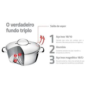 O design clean da linha Allegra foi criado para tornar mais simples as tarefas de forno e fogão. Totalmente feitas em aço inox, por isso não solta nenhum resíduo nos alimentos, mantendo-os saudáveis. Altamente durável, mantém as características originais, preservando a beleza, a higiene e a durabilidade do material. O fundo triplo (aço inox + alumínio + aço inox) distribui o calor uniformemente, proporcionando um cozimento mais rápido e uniforme, economizando energia e deixando os alimentos aquecidos por mais tempo. Possui design diferenciado e moderno, com acabamento em alto brilho. Desenho limpo e sem cantos torna a limpeza mais fácil. Tampa com saída de vapor e encaixe perfeito. Podem ser lavadas diariamente na máquina de lavar louças. Podem ser utilizadas nos fogões: gás, elétrico, vitrocerâmico e indução. ORIENTAÇÕES:- Antes de utilizar o produto, remover as eventuais etiquetas e lavar com água quente e detergente. - Use uma fonte de calor brando para evitar que o alimento grude no fundo da panela. O fundo triplo distribui uniformemente o calor, não sendo necessário o fogo alto. E, além disso, você economiza energia.