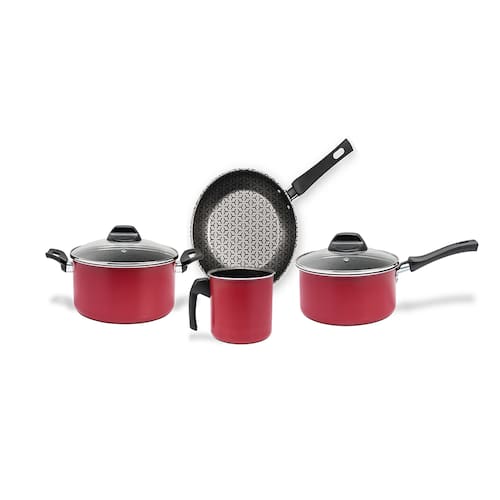 Sua estrutura em alumínio garante distribuição uniforme do calor, proporcionando cozimento rápido e eficiente. O revestimento antiaderente Pro Flon evita que os alimentos grudem, permite o uso de menos óleo e facilita a limpeza, tornando o preparo mais saudável. O jogo de panelas conta com: