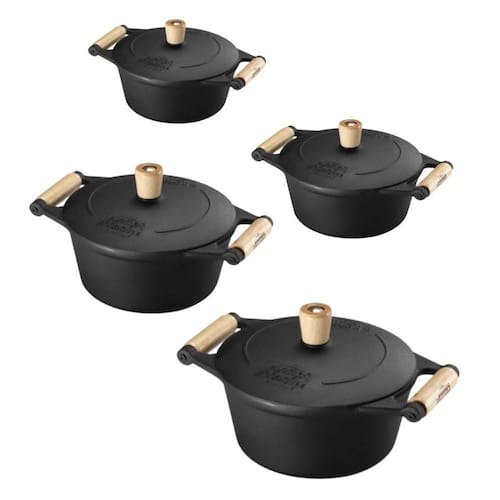 Jogo de Panelas 4 Peças em Ferro Fundido e Alça de Madeira Panela Mineira - Especificações TécnicasItens: 04