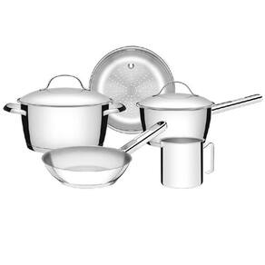 Jogo de Panelas 5 Peças Allegra em Aço Inox com Fundo Triplo e Tampas de Inox Tramontina