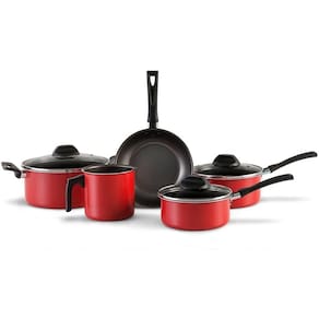 Sabe aquelas receitas deliciosas que você costuma preparar, agora, com o Jogo de Panelas Panelux Alumínio 5 Peças Antiaderente Vermelho elas ganharão o toque de profissionalismo que você tanto busca, e o melhor, tudo isso sem sair do conforto do seu lar. Sua cozinha ficará completa, pois além da funcionalidade e do dinamismo, o Jogo de Panelas possui um visual incrível, cheio de cores e com acabamento de primeira. O Conjunto de Panelas Panelux Alumínio 5 Peças Antiaderente Vermelho é completo e vem com: 1 Panela 16, 1 Panela 18, 1 Caçarola 18, 1 Fervedor e 1 Frigideira Francesa 18, ou seja, uma peça para cada preparo, assim você não precisa ficar improvisando com utensílios inadequados. Seu sistema antiaderente não deixa que os alimentos grudem no fundo das panelas, deixando tudo mais saboroso, além disso, fica muito mais fácil na hora de limpar. Proporcione sabores e aromas inesquecíveis para você, seus amigos e sua família, deixe sua imaginação fluir e crie receitas dignas de um grande restaurante.