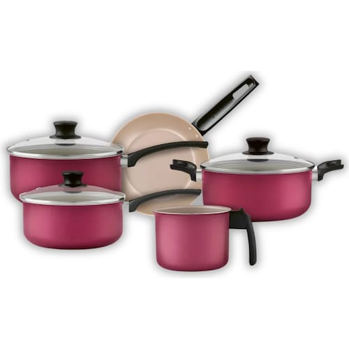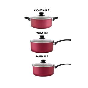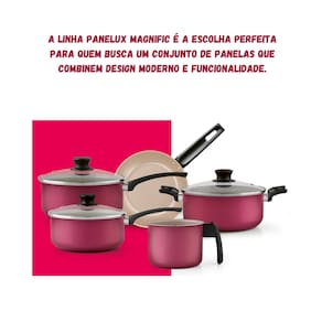 Jogo de Panelas 5 peças Panelux Antiaderente c/ Tampa de Vidro O Conjunto de panelas alumínio 5 pcs antiaderente Grafite Magnific Cereja é a escolha perfeita para quem busca um produto de qualidade, segurança, prático e saudável. Com 5 peças, ele é ideal para preparar todos os tipos de refeições, desde um café da manhã rápido até um jantar sofisticado.