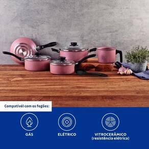Jogo De Panelas 5 Peças Rosa Linz Antiaderente e Colher Tramontina