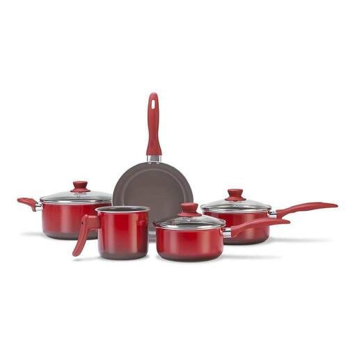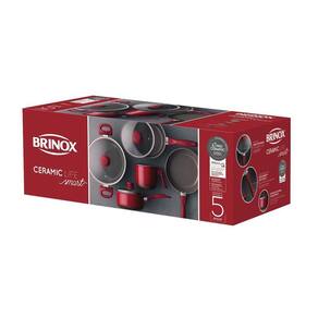 Jogo De Panelas 5 Peças Smart Vermelho Brinox Que tal aliar uma cozinha linda a alimentos saudáveis a linha smart faz isso por você com a nova geração de antiaderente cerâmico: a pro ceramic premium, as peças da linha smart estão mais resistentes, livres de metais pesados e elementos químicos prejudiciais à saúde, exigem menos uso de óleo no preparo das refeições, não deixam os alimentos grudarem, facilitam na limpeza e consomem menos energia. Na parte externa, o charme da pintura siliconada colorida e das alças com revestimento soft-touch, de toque macio e que não esquentam durante o uso, além das tampas de vidro temperado com saída para o vapor, para espiar a comida sem prejudicar o cozimento. Nesta versão, a cor da pintura é vermelha. O ciclo de vida do produto pode variar conforme frequência e intensidade da utilização. O produto deve ser descartado (livre de materiais orgânicos) em coletores de resíduos seletivos. A logística reversa não é aplicável. Especificações Material Alumínio Linha easy Composição 01 Panela com Tampa Ø16 x 8,2 cm 1,4L 01 Panela com Tampa Ø18 x 9,2 cm 2,1L 01 Caçarola com Tampa Ø22 x 10,4 cm 3,6L 01 Frigideira Ø22 x 4 cm 1L 01 Fervedor Ø12 x 11,8 cm 1,25L Espessura 2.0mm