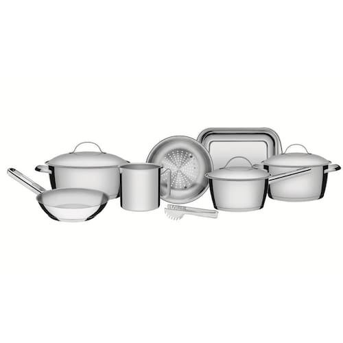Sua cozinha ficará completa com o Jogo de Panelas Tramontina Allegra em Aço Inox com Fundo Triplo 8 Peças. São sete peças perfeitas para você preparar diferentes tipos de receitas, das mais simples às mais complexas. Elas apresentam fundo triplo (aço inox + alumínio + aço inox), tecnologia que distribui o calor uniformemente, cozinhando os alimentos mais rápido e economizando energia. São utensílios de muito bom gosto e totalmente produzidos em aço inox. Eles embelezam sua cozinha dando um toque de elegância e estilo. O design moderno também traz tampa com saída de vapor e encaixe perfeito, facilitando o uso. Ideal para as tarefas do dia-a-dia ou para aquela reunião com pessoas especiais. As peças ainda são muito versáteis, podendo ir ao forno e em diferentes tipos de fogões. ATENÇÃO: O fervedor não é indicado para o fogão à indução.