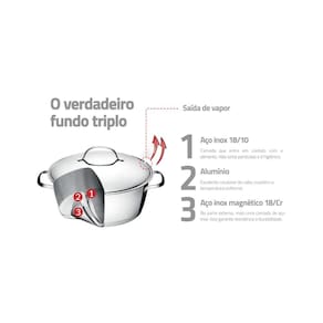 Caçarola Funda Tramontina Allegra em Aço Inox com Fundo Triplo - 22 cm - 3,3 L