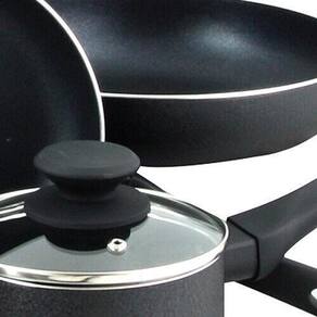 Versatilidade: panelas, em diferentes tamanhos, com tampa, frigideiras e utensílios. Tudo que você precisa para cozinhar, fritar, assar e fazer as receitas mais deliciosas do mundo;