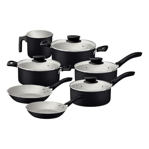 Marca: Tramontina | Modelo: Linz | Com revestimento antiaderente: Não | Peças incluídas: 7 Peças | Material do cabo: Teflon | Fonte do produto: Nacional | Linha: Linz | Quantidade de peças: 7 | Condição do item: Novo | Materiais: Alumínio | É kit de fábrica: Sim Cor: Preto
