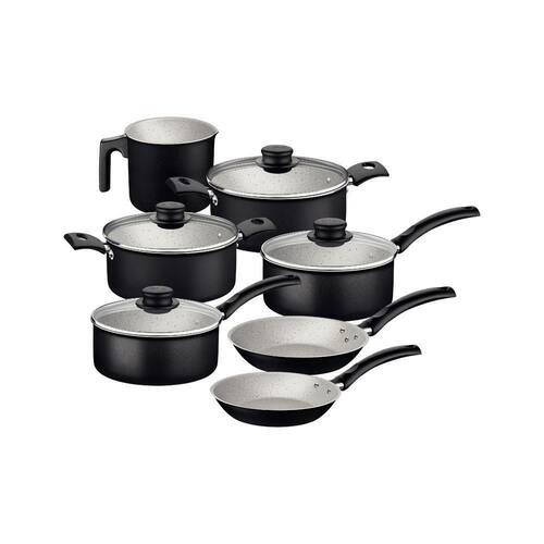 É adequado para lava-louças: Sim | Marca: Tramontina | Modelo: Turim | Com revestimento antiaderente: Sim | Peças incluídas: 7 peças | Material do cabo: Plástico | Fonte do produto: Nacional | Linha: Turim | Quantidade de peças: 7 | Condição do item: Novo | Materiais: Alumínio Cor: Preto