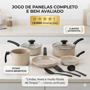 Jogo de panelas 8 peças teflon antiaderente Preto e Bege