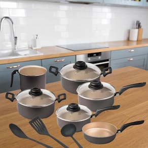 Material da Panela: Alumínio Material da Tampa: Vidro Antiaderente: Sim Quantidade de Itens no Kit: 08