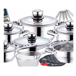 Jogo de panelas - aço cirúrgico 23 peças - luxo dsseldorf panelas de ótima qualidade peças em aço cirúrgico alemã. Certificado de garantia mundial. Utilizado pelos melhores chefes de cozinha do mundo. Tem garantia. Características:23 peças 9 camadas de cerâmica antiaderente aço cirúrgico 18/10 gramatura termostato garantia de 1 ano pelo fabricante produto 100%. . . . Jogo de panelas 12 peças royal01 - 1 caçarola 6. 5 litros medindo 24cmx14cm com tampa02 - 1 caçarola 3. 0 litros medindo 20cmx10cm com tampa03 - 1 caçarola 1. 6 litros medindo 16cmx08cm com tampa04 - 1 frigideira 3. 0 litros medindo 24cmx6. 5cm com tampa05 - 1 panela 1. 6 litros medindo 16cmx09cm com tampa06 - 1 panela vaporizadora medindo 20cmx10cm07 - 1 fritadeira medindo 18cmmais, 11 utensílios para cozinha08 - 02 bakelite suporte de panelas09 - 01 conjunto de utensílios nylon 6 peças 10 - 1 botão sucção11 - 1 livro de receita em 3 línguas alemão,russo e inglês 12 - cartão de certificação de fábricatampas com termômetro. Caixa totalmente lacrada. Peso: 11. 2kg. ---------------------------------------------------------------------------------------------------------------enviamos a mercadoria imediatamente após a confirmação da compra. Nossa equipe de pós venda está disponível para sanar todas suas dúvidas. . . Marca: Nakazaki
